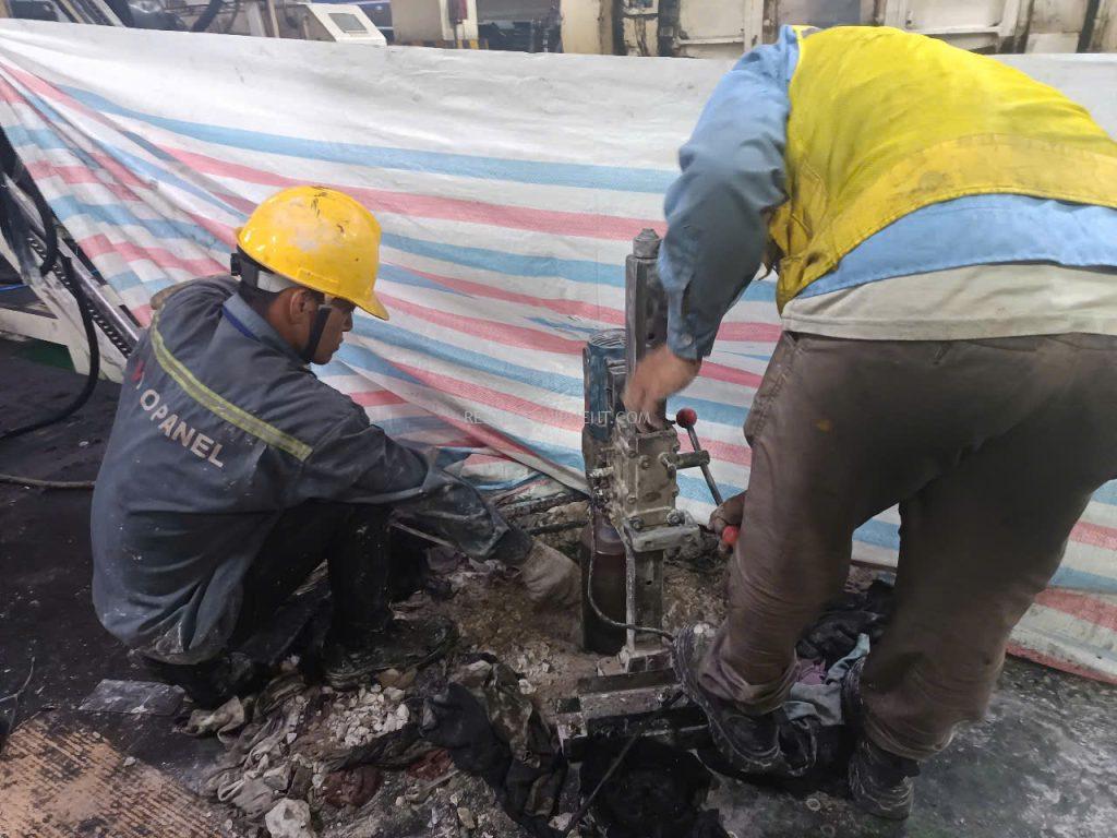 (Hình ảnh khoan lỗ lắp máy mới sau khi lấy dấu)